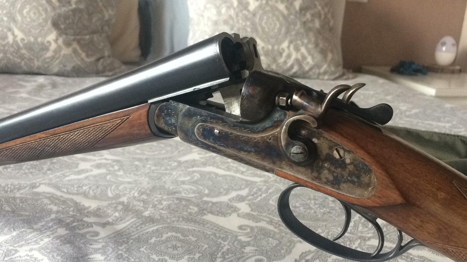 se vende escopeta paralela MUGICA de perrillos. calibre 12/76 recamara magnum