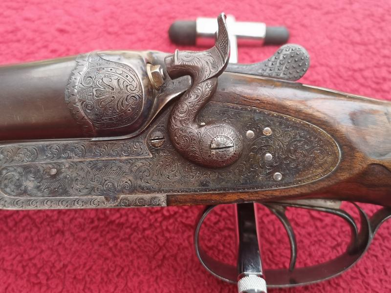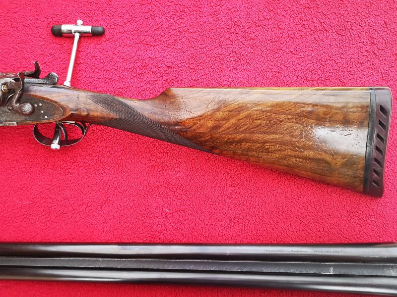 Unión armera fabricada de encargo dos juegos de cañones uno de 75 y el otro 66 expulsora se puede abrir la escopeta con los martillos montados culata inglesa de nogal de 37 escopeta en buen estado se puede comprar con estuche o sin el precio 1.800€ incluye estuche ingles
