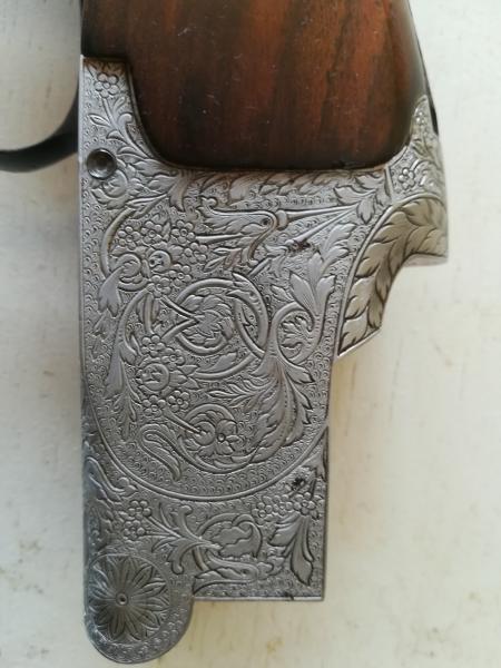 4.- Bascula grabada junto con palanca de apertura, guardamonte y tornillos.