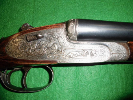 Vendo Yuxtapuesta Martin Ugarterburo gravados en relieve, de la epoca floreciente de los grabadores de Eibar, culata inglesa de nogal acabada al aceite, cañones de 75 expulsores automaticos y selectivos triple cierre purdey,llaves de doble seguro , desmontables a mano dos gatillos el primero articulado.