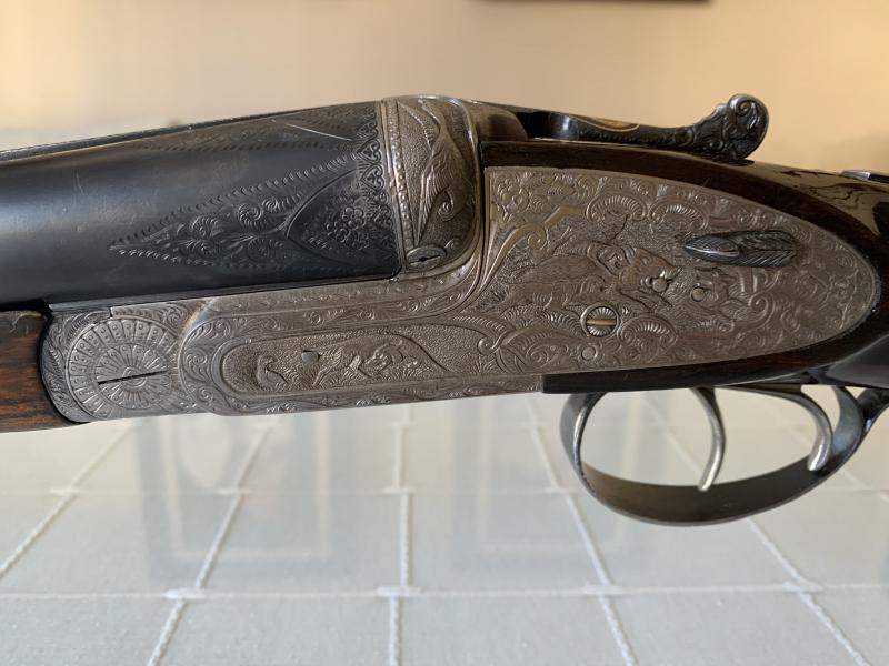 A la venta preciosa escopeta yuxtapuesta del calibre 12. Sucesores De Joaquin Fernandez se vende por exceso de armas. Escopeta muy completa, grabados en relieves, con apertura automática, triple cierre purdey, indicadores de carga, expulsora, gatillo articulado, valvula de gases... Cañon Acero De Bellota Demi-Block de 73,5 cm de 2*y1*, culata sin cortar 37cm.