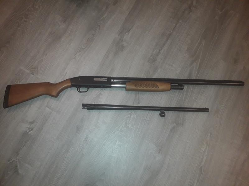 Vendo escopeta de corredera marca maverick con dos cañones uno liso de 60cm y el otro de 70cm con choques intercambiables aunque solo tengo el full