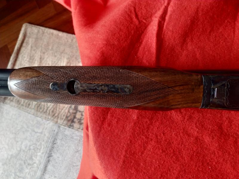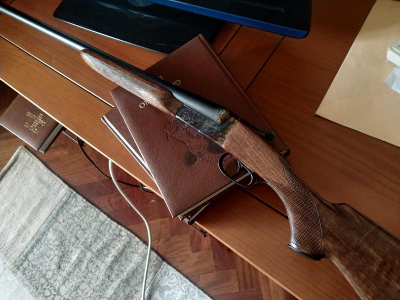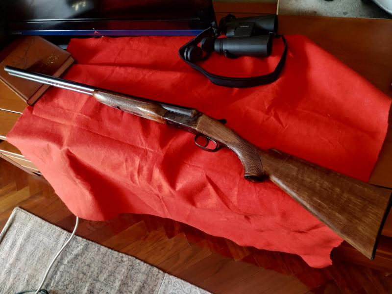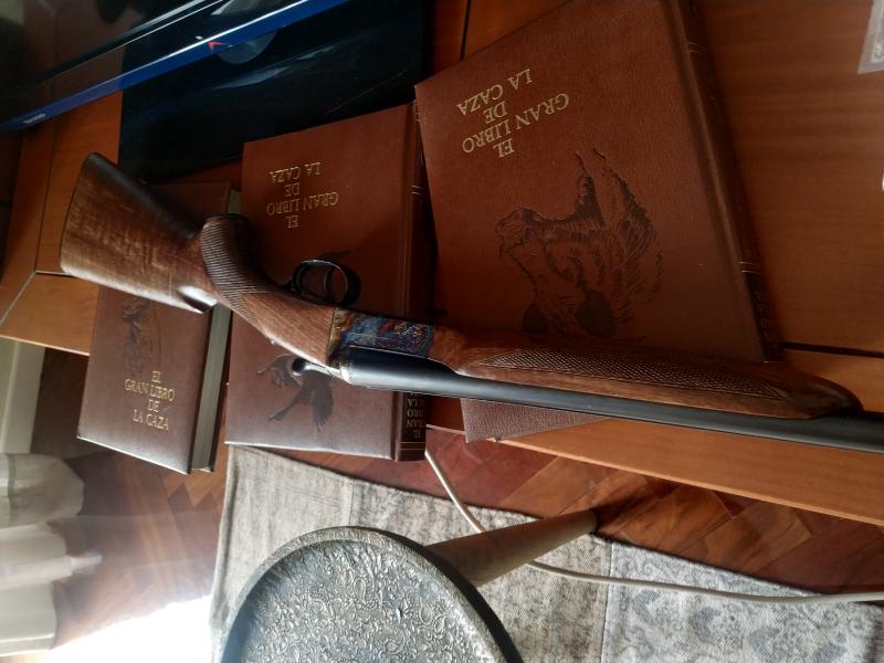 Aya modelo Número 3A, en calibre 20/76 (Magnum). Cañón de 63 cm, con tres y una estrellas. Extractora. Preciosa escopeta, con un peso ridículo.