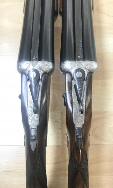 Vendo pareja de escopetas Unión Armera mod. N•215, en un estado excelente tanto de aspecto como de funcionamiento. Escopetas con muy pocos disparos.