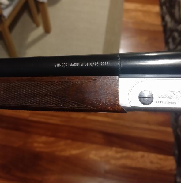 Se vende escopeta paralela Stinger calibre 410. Cañones de 71cm, con cinco choques interiores, monogatillo, y selector, estractora. Muy muy poco usada. Precio 425€. Cambiaria por carabina 22 lr de cerrojo.
