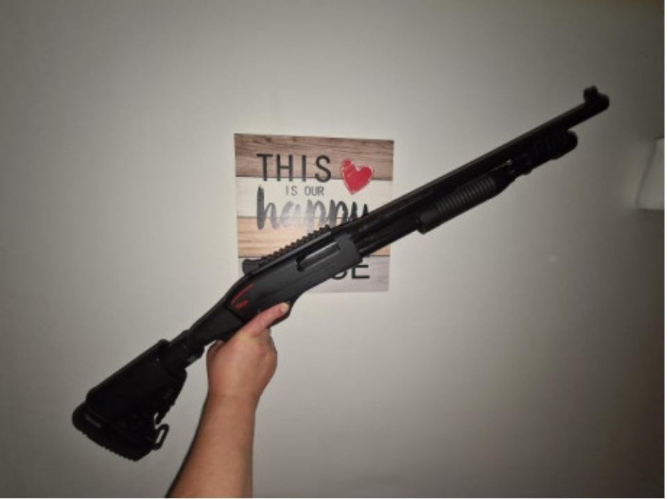 Es una escopeta tactica con culata retráctil, envío fotos y vídeos por WhatsApp,