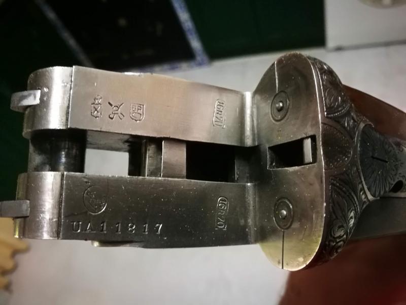 Escopeta Grulla (unión armera) modelo 208D calibre 16/70 extractora. Muy ligera y con un encare excelente. Coscorros grabados y escape de gases. Maderas de nogal fino.