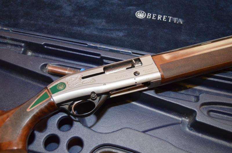 Escopeta Semiautomática Beretta Al 391 Teknys Stonecoat Gold (lagrima verde) del calibre 12 con cañon de 71 cm,con cinco optimachokes (4 beretta y 1 briley) , Puede disparar munición desde los 24gr hasta los magnun de mayor gramaje, la carcasa lleva un baño multicapa a base de níquel y cromo con una protección de titanio y circonio que le da una proteccion casi de por vida ,el cañon admite cualquier municion incluida la de acero.