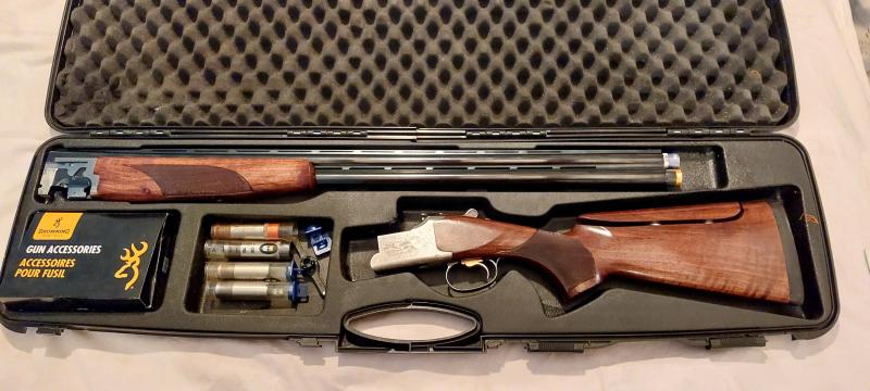 Vendo escopeta Browning 525 Sporting, 76 ctms.de cañon, banda ancha de tiro, 5 chokes interiores Invector Plus, 4 chokes exteriores Briley, culata con subibaja regulable, maletin original Browning, punto de mira de fibra optica, muy poco uso.