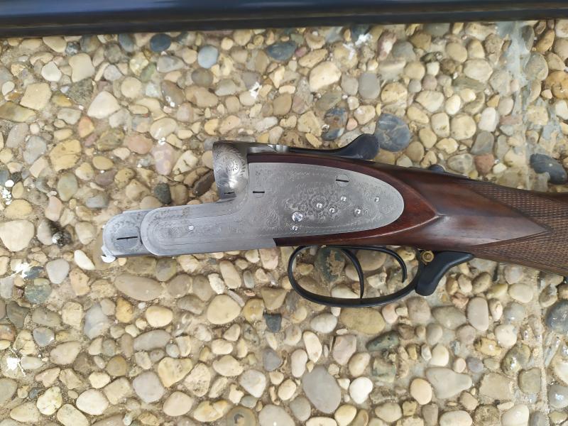 Un amigo me pide que le ponga en venta una escopeta paralela Ugartechea, cal 12, sin apenas uso como se puede ver en las fotos.