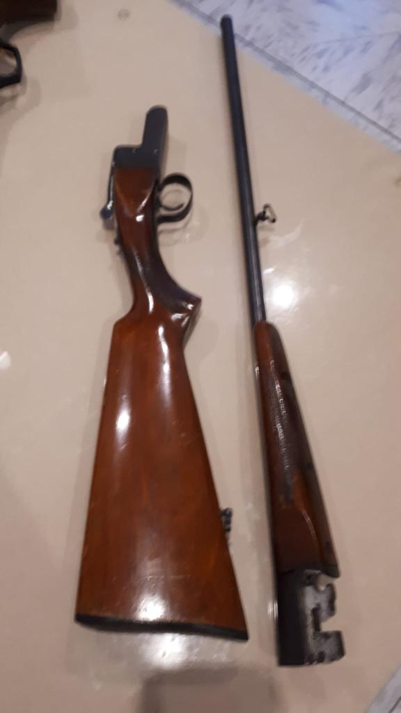 1 escopeta paralela de calibre 12, que se encuentra averiada , ya que no extrae los cartuchos.