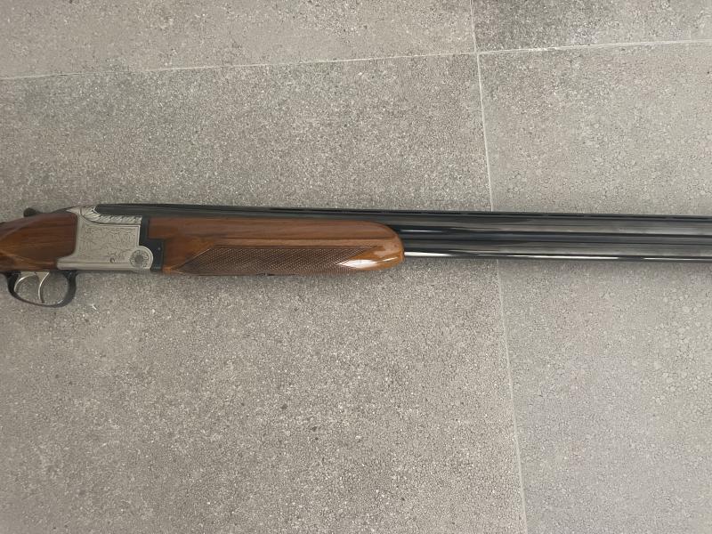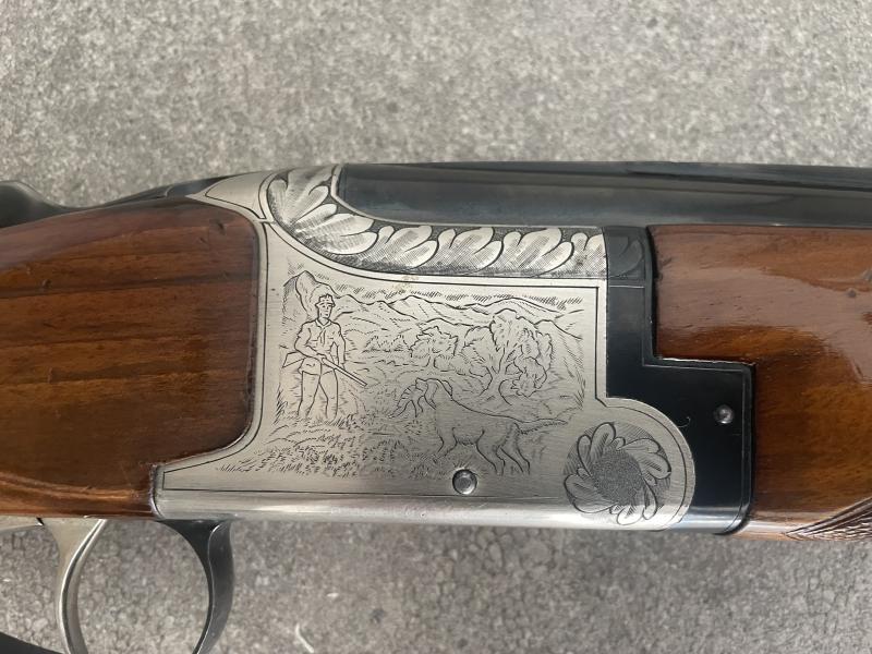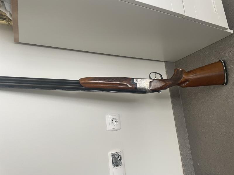 Vendo escopeta superpuesta Laurona cal. 12, en el lateral del cañón, debajo de la caña indica ** y **** y 71 cm., expulsores, cromo negro.