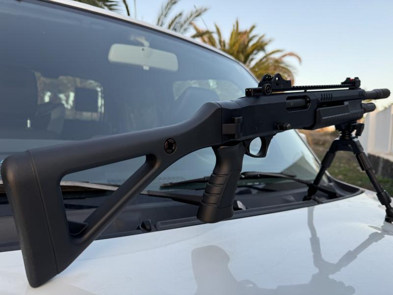Buenos días compañeros, un gran amigo pone a la venta esta escopeta. La compró este verano por lo que está en garantía, esta nueva tiene exactamente diez tiros para probarla. Sé compró para cobrar guarros en el rio y evitar algunos sustos que se han tenido en el pasado con animales pinchados pero es un arma táctica, su fin no es ese y el amigo no llegó ni a estrenarla.