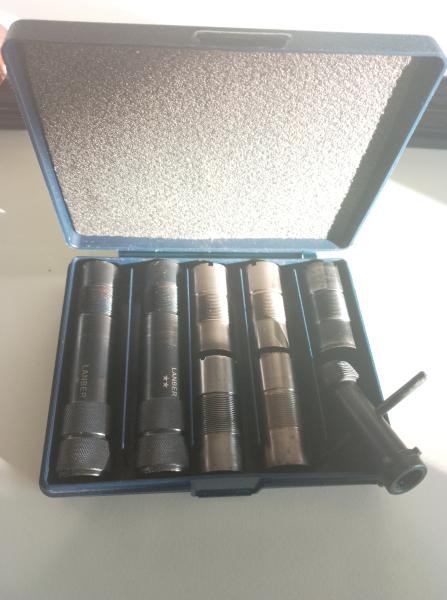 Escopeta superpuesta calibre 12 modelo Lanber 2097 Sporting Lux. Cañón de 71 cm. Con señales superficiales de uso pero en muy buen estado, excelente pavón del acero, cañones como espejos por dentro y perfecto funcionamiento mecánico y ajuste. La compré para tiro al plato pero no lo practico. Viene con 5 chokes interiores y 2 chokes prolongadores (la carrillera no la trae). Incluye funda. Es muy robusta y con gran plomeo, reconocida incluso en USA donde la llaman "workhorse".
