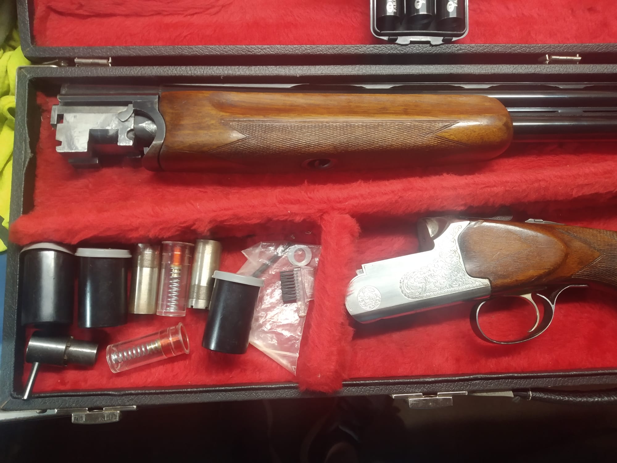Cañones a espejo .bascula plateada y cañones y pavonado impoluto y maderas.