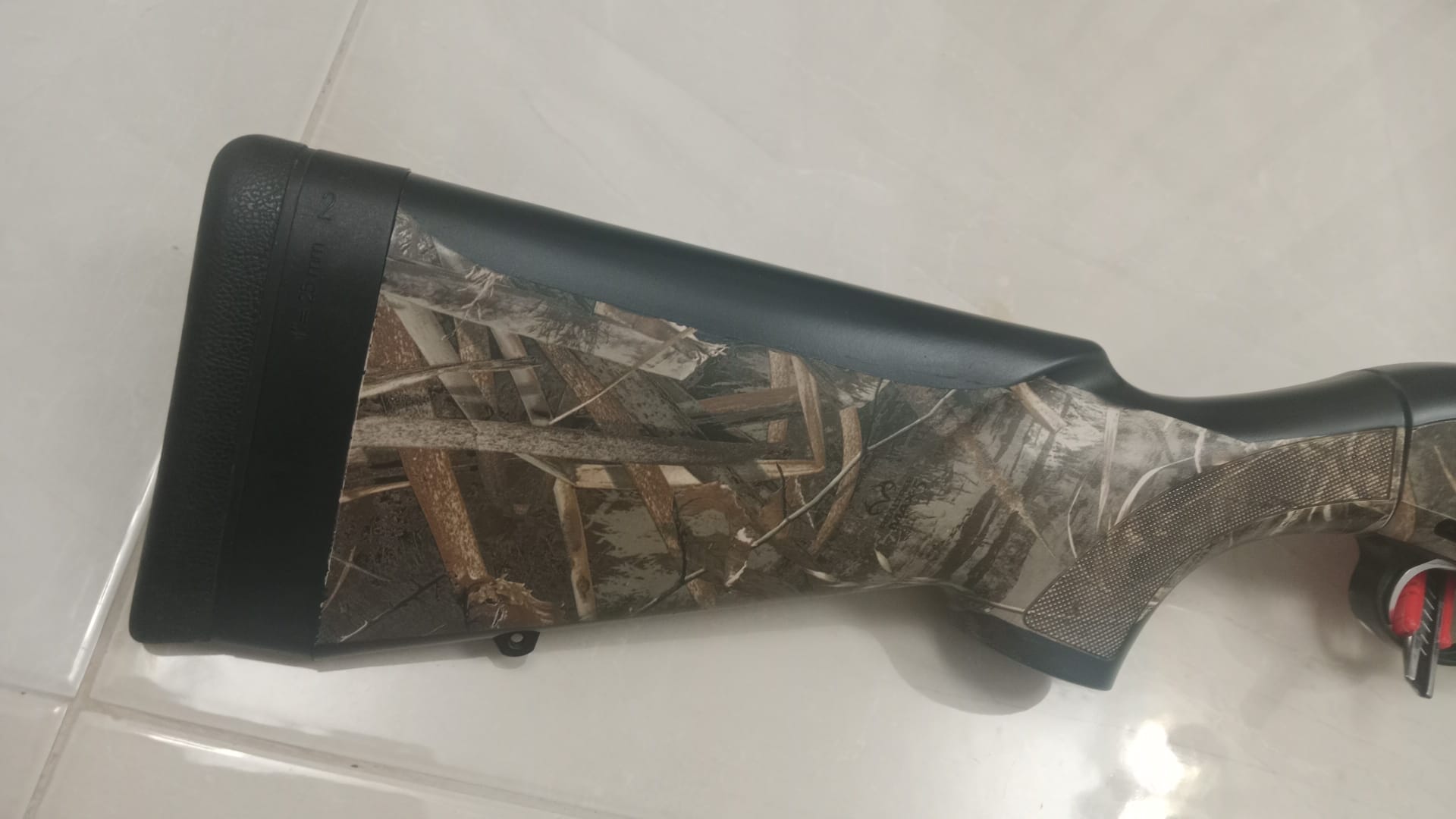 Buenas compañero. Ese camuflaje no parece el original. ¿Es hidroimpresión? ¿La escopeta és sintética, de madera?