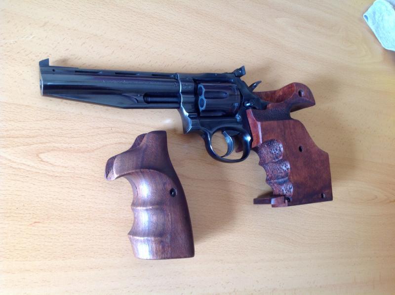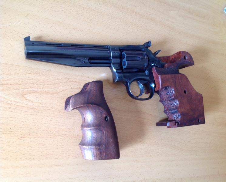 Edito el mensaje y añado al revólver unas cachas semianatomicas de madera de regalo.
