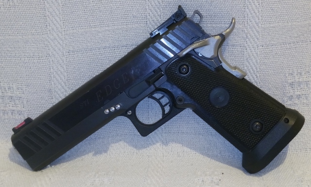 El otro arma,que he utilizado para la competicion de IPSC es la STI Eagle 5.1,la misma calidad que la anterior pero en calibre 40 S&W.con dos cargadores y dies RCB, con miras de tritio ,pero conservo tambien las miras originales del fabricante