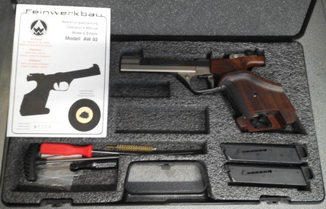Pistola Feinwerkbau AW 93 Cal. 22LR. 2 cargadores. Cacha anatomica original regulable. Guiada en F.