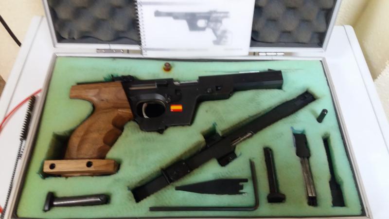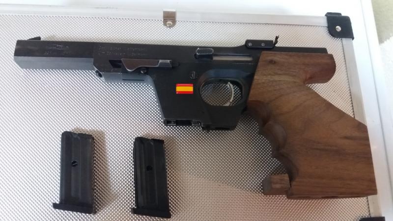 WALTHER GSP con carros del 22 y del 32, dos cargadores de cada calibre,el carro del 32 tiene contrapeso original walther de 65 gramos, 2 cachas anatómicas, la que está montada es talla M nueva y sin retoques, la otra es talla L usada y con masilla.