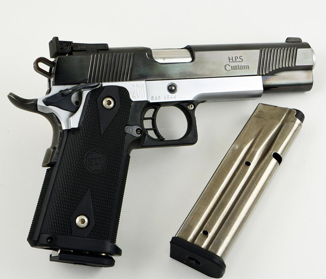 Esa pistola es una HPS CUSTOM, con armazón STI 2011 pero con cañon y corredera fabricados en Alemania.
