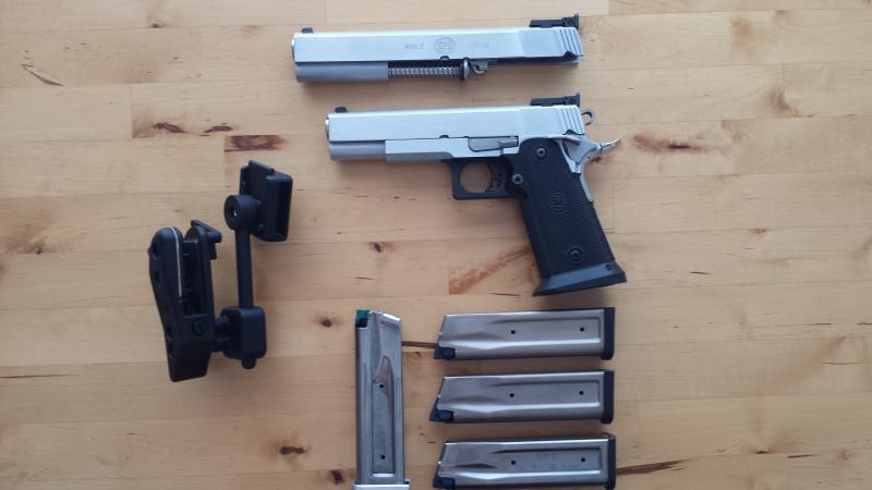 Vendo pistola SPS con cañones de 5’ y 6’, ambos del calibre 9 mm., con 4 cargadores, 3 con capacidad para 17 cartuchos y 1 para 20 cartuchos. Precio 950 €.