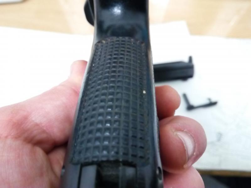 Señalar que le lijé levemente la empùñadura, ya que el agarre de la misma es bastante agrersivo para la mano, como imagino que ya sabréis. El arma se encuentra en Alicante.