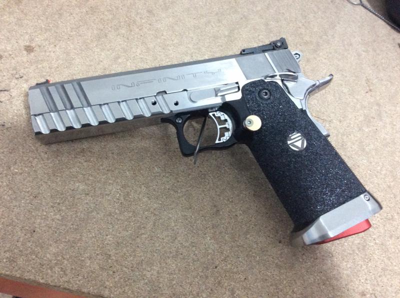 Se entrega con 4 cargadores, 2 cartucheras de desenfunde rápido, 4 porta cargadores, cinturón, y de regalo un cañón del 40sw, 6 cargadores de 40 sw, y alguna cosa más.