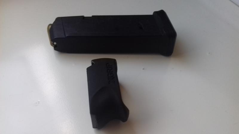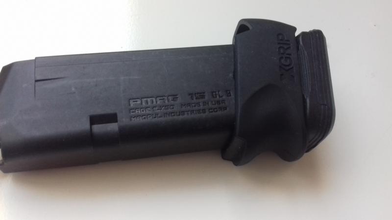 La pistola con el cargador de 15 y el grip, que la convierte, a efectos de empuñe y capacidad, en una glock 19