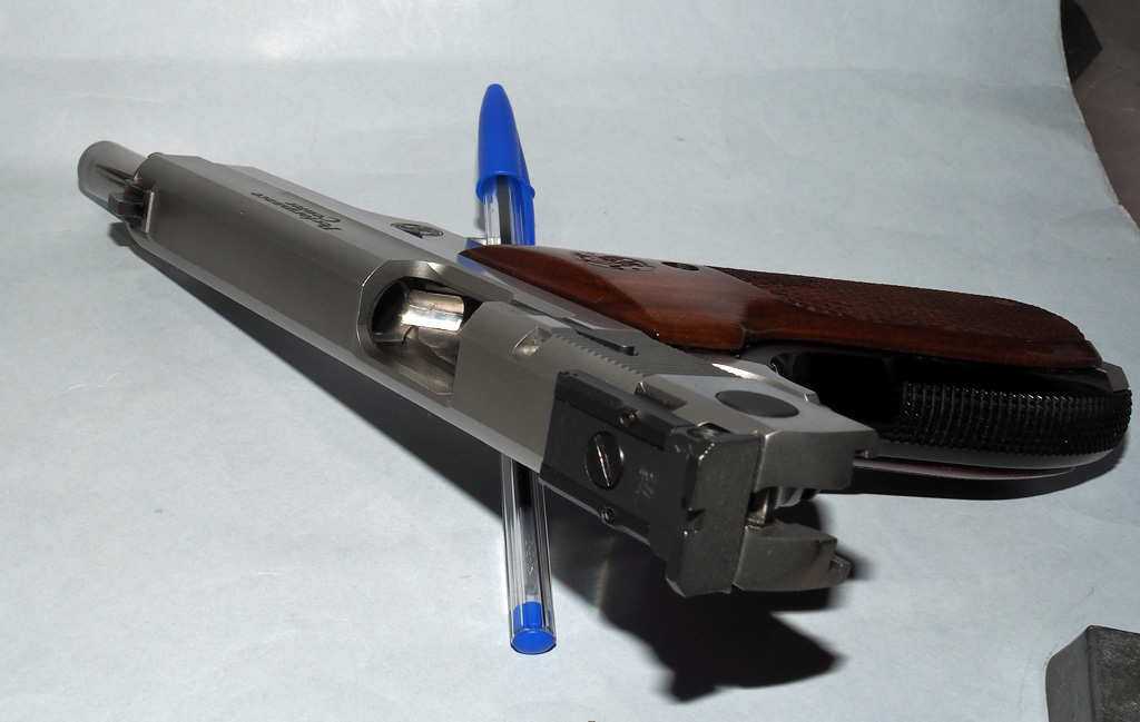 Que gran arma fabricada por el centro de perfeccionamiento de S&W y una pena que ya este descatalogada y hayan dejado de fabricarla...una de las mejores pistolas para la modalidad de 9mm indestructible e indesgastable. Yo compre una de 6 pulgadas de la Perforance center pero la Master Piece algo mas superior a esta y en precio tambien y no la cambio por nada...
