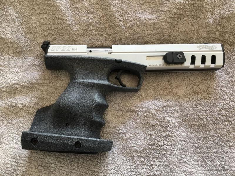 Vendo una Walther SP22 modelo M4 del calibre .22LR, es una pistola ideal para iniciarse el tiro y con ella conseguí ascender en standard a la segunda categoria. La pistola funciona perfectamente, jamás se me ha interrumpido, tiene una cacha anatómica ajustable muy cómoda, gatillo regulable en peso y recorrido, pesa menos de 1kg y tiene un cañón de 6'. Está guiada en F, y se entrega con su maletín, un cargador, manual y una pequeña bolsita de herramientas para su despiece. La pistola se encuentra en Barcelona a toda prueba sin compromiso en el campo de tiro de Mataró. La dejo en 200€ con el envío a cargo del comprador.