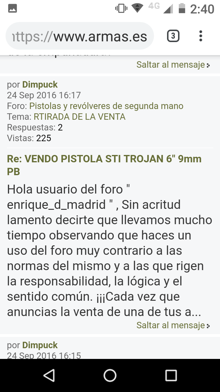 Sin querer echar leña al fuego creo que el compañero Dimpuck no dice nada incoherente ni falta el respeto a nadie, esto es un foro público y todos tenemos derecho a comentar "y más si es para ayudar a alguien que va a comprar un arma de esas características y precio". Las normas son las que son.