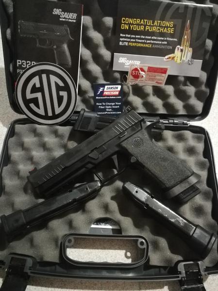 Arma en perfectas condiciones con 2 cargadores extra, Talon Grip y funda Ghost hybrid de regalo. Tiene menos de un año como se demuestra en la fotografía, se puede probar sin compromiso, se encuentra en Baleares. Arma apta para produccion, standard y carry optics colocándole un visor de punto rojo(corredera adaptada de serie para DPP o Sig Romeo)
