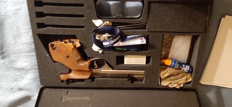 Vendo pistola cal 22 Feinwerkbau AW 93, perfecto estado , maletín , dos cargadores, tal y como viene de la casa, único dueño pocos tiros, con cacha RINK para diestro con ojo director izquierdo como es mi caso, y la cacha de fábrica.