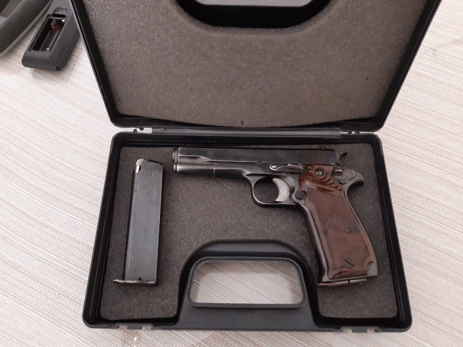 Presenta desgastes del pavón normales de meter y sacar de la funda. Buen estado general. Mecaniza a la perfección, como es habitual en estas pistolas, fabricadas muy bien y muy fiables.