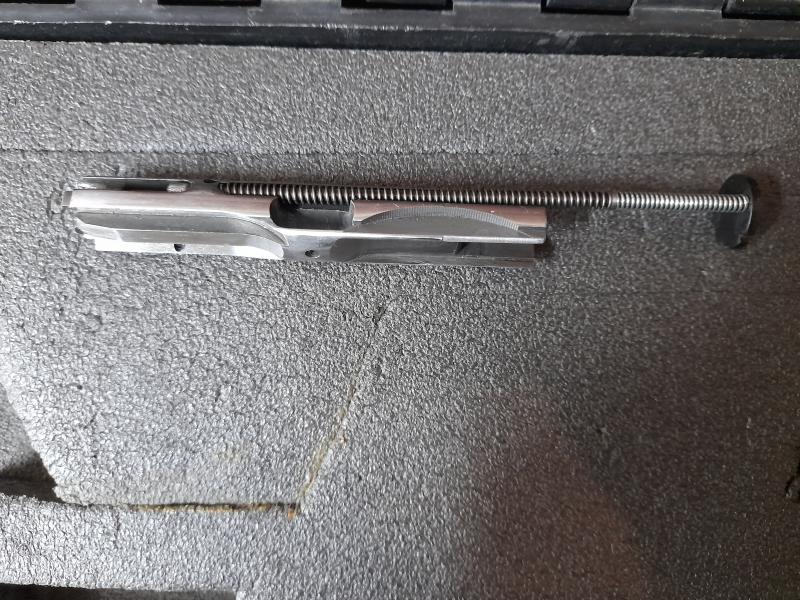 Vendo esta Walther OSP recamarada por armero al 22lr, de hecho esta guiada en F como 22lr. Tiene mejorado el muelle recuperador (puede verse en las fotos) y recién cambiada la aguja percutora y tiene el disparador moderno, por eso pensado que es el momento de dejar un hueco en el armero. Este modelo no queda abierta con el último disparo. Funciona perfectamente aunque yo por precaución la mantengo bien limpita y le paso un bastoncitos de algodon cuando acabo cada tirada. Cualquiera que quiera adquirir esta viejecita y no haya tenido una walther gsp quedará satisfecho con la precisión y suavidad con cualquier munición. Adjunto maletín de transporte, llave allen para desmontaje, disparador original y dos cargadores, uno del 22 short original y otro del 22lr. PRECIO 375€ con portes a península incluidos. El arma está en Valecia para probarla. Solo admito cambios por pistola calibre 32.
