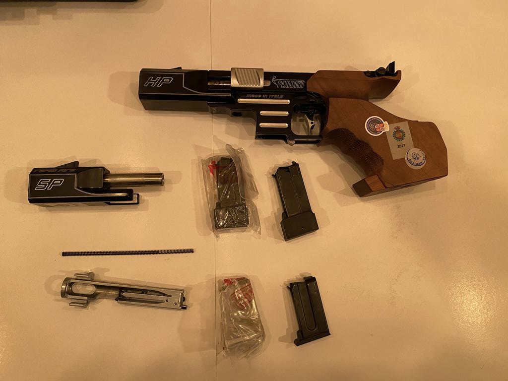 Vendo mi Pardini SP .22 RF, con kit de conversión del .32S&W, el arma tiene cuatro años y ha tirado unos 800 cartuchos de cada calibre, pocas competiciones y con esto del COVID menos aún, está amparada en guia “F” ( yo la tengo guiada en A, especificada como tieo deportivo por motivos profesionales) tiene la cacha original talla M muy poco tocada y otra cacha hecha a medida. De cada kit solo se ha usado un cargador, el otro impoluto, maletín, herramientas y kit de limpieza sin usar. Fue comprada en Ibergrips e importada de USA, por eso tiene palanca de seguro.