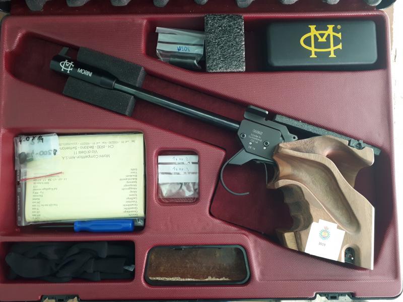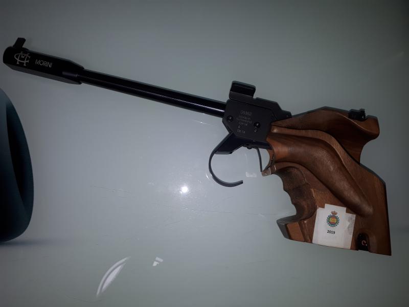 Hola. Se vende pistola libre Morini CM84E. Comprada en 2014, lleva unos 6000 tiros. Cacha talla S sin retocar en absoluto (los añadidos que se ven están con cinta adhesiva de doble cara). Va en el maletín tal cual viene de fábrica: estuche de limpieza, 2 muelles de recambio, instrucciones, blanco de prueba y un punto extra de 4mm de ancho.