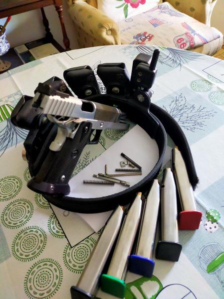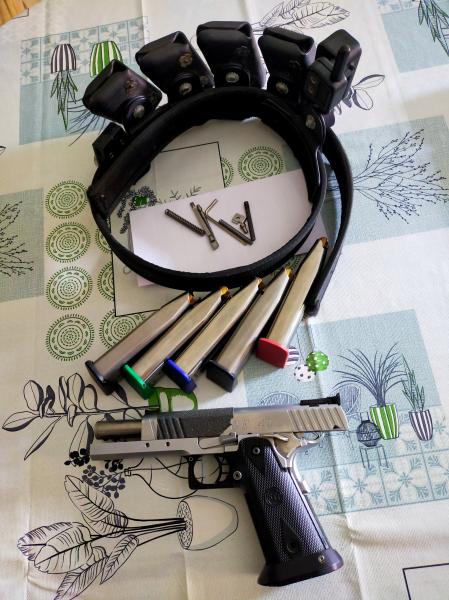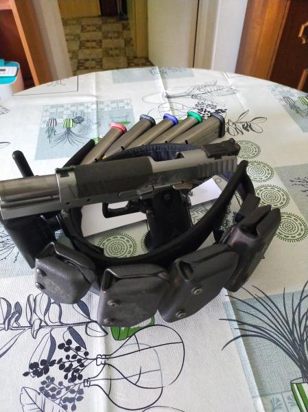 Pistola STI .40, cinco cargadores, cinturón y funda extracción rapida, agujas y muelles repuesto. Pocos tiros