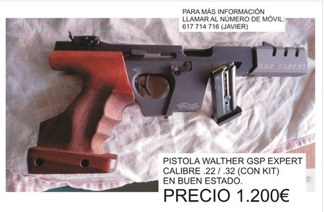 Re: Vendo Pistola Walther GSP Expert .22 + Kit .32 (1.200€)