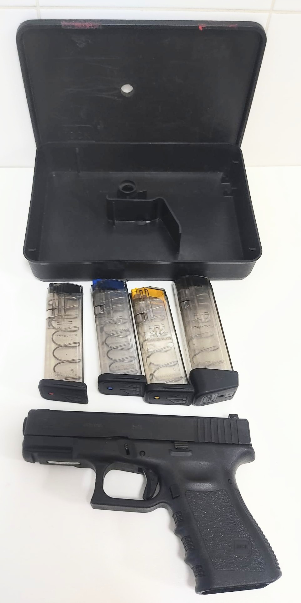 Se vende Glock 19 gen 3 con 4 cargadores ETS , tres nuevos y uno con poco uso. Un cargador con tapa para 17 cartuchos. La caja de la pistola es un táper de una gen 2. El precio son 450€ y portes a cargo del comprador. No se admiten cambios.
