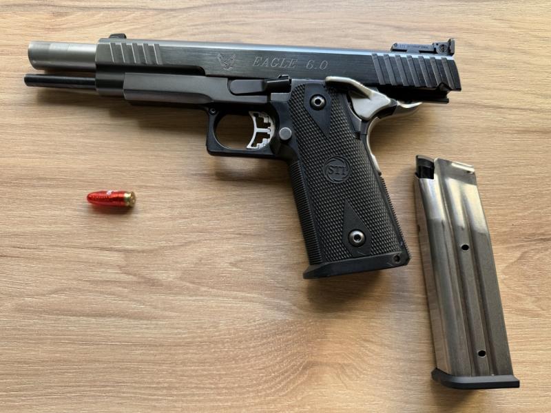 Vendo pistola STI EAGLE de 6 pulgadas con pocos tiros y siempre con munición recargada. Está guiada en F. Pertenecía a un tirador de 1ª categoría que le cambió muchas piezas y la ajustó para precisión. Algunas características:
