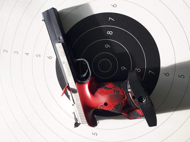 Esse sport 750e.con dos cargadores cachas anatomicas rojas, alza LPA mira ajustable , reglaje disparador.