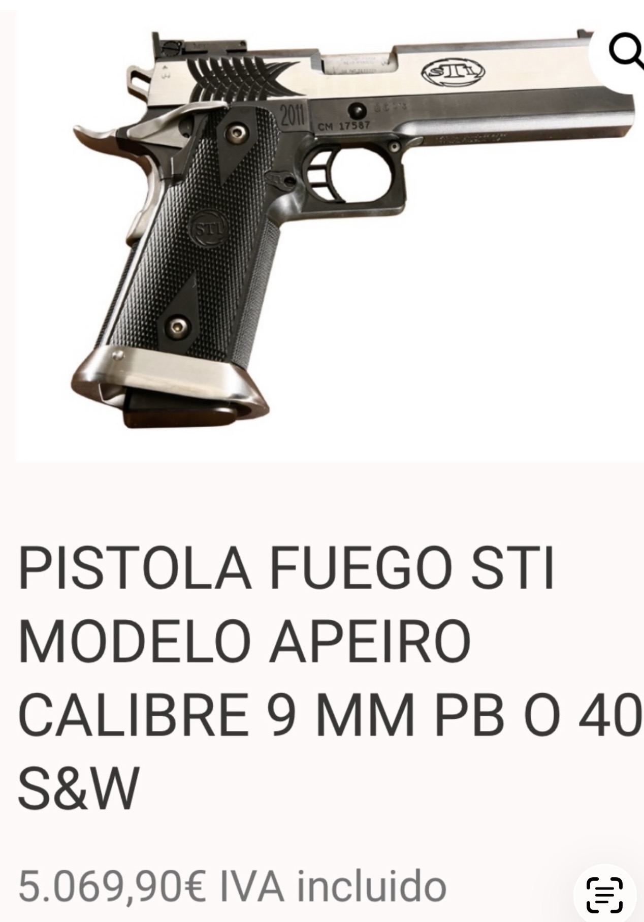 Magnífica pistola STI APEIRO cal 40SW con los siguientes extras:
