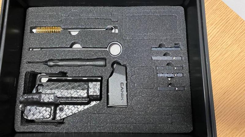 - Maletín original, trae varias placas para Optics, un tirador de corredera, útiles de limpieza, una funda Canik, etc….. Esta nueva!!
