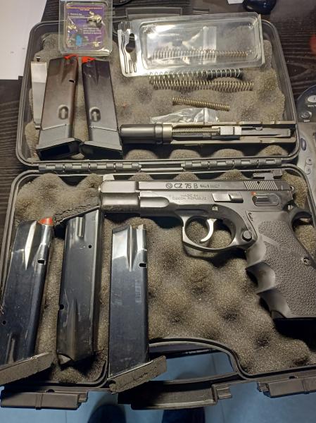 HOLA COMPAÑEROS POR CAMBIO DE MODALIDAD VENDO CZ 75B DEL 9MM Y KADETT DEL22 EN PERFECTO ESTADO ,TIENE CACHAS DE NEOPRENO PARA UN AGARRE PERFECTO ,PUNTO DE MIRA LPA ,TODOS LOS MUELLES NUEVOS .TIENE 3 CARGADORES DEL 9MM Y 2 DEL CAL-22 ,SE VENDE POR 850e