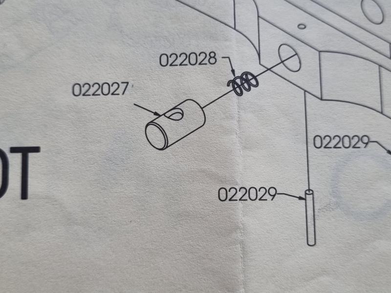La pieza que le falta es el conjunto de retención que aparece en el manual. Pero al tener el otro conjunto, el arma funciona perfectamente.