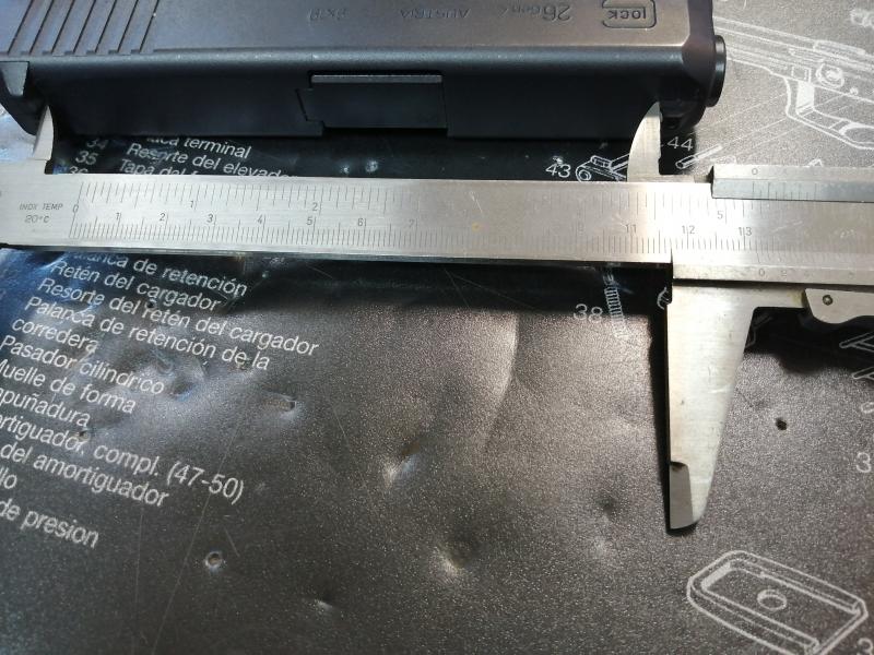La glock 26 entra por medidas en la F sin problemas y si no recuerdo mal todas las Glock sin excepción dan las medidas mínimas para guiarlas en F y poder participar en tiradas (precisión, IPSC). En principio no tienes que te tener ningun problema en guiarla de una licencia A a una F, para salir de dudas habla con tu interventor, si no tendras que pedir en la federación el certificado de arma de concurso, es un arma perfectamente apta para hacer precisión o recorridos IPSC modalidad de producción, no és el arma ideal pues estas en desventaja en relación a otros competidores, pero si te gusta..........igual te sorprendes de su precisión y robustez.