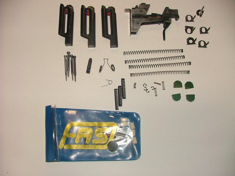Tiene muchos repuestos, un cassette de disparo adicional, dos cargadores, tres agujas percutoras y muelles diversos y amortiguadores.