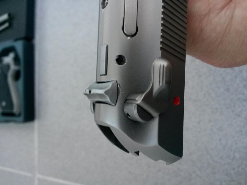 Cuando la compré me vino así. Se lo dije al vendedor, y parece ser que al estar depositada en una armería, éstos la intentaron vender por su cuenta. Vino un posible comprador que la quería para precisión y le instalaron un alza regulable... ¡pero de qué forma!. Se cargaron el alza fija original, le dejaron estas muescas que se ven en la foto (NO AFECTA PARA NADA EN EL FUNCIONAMIENTO. SOLO SON ESTÉTICAS), y le pusieron un alza que no es original, aunque hace su papel.